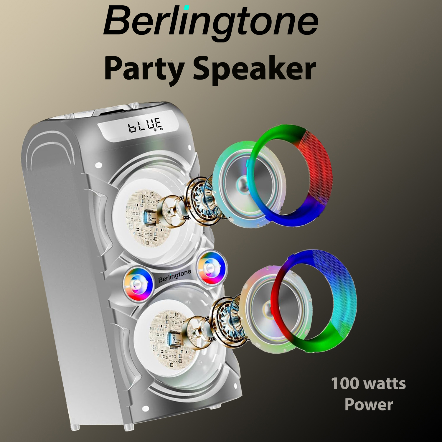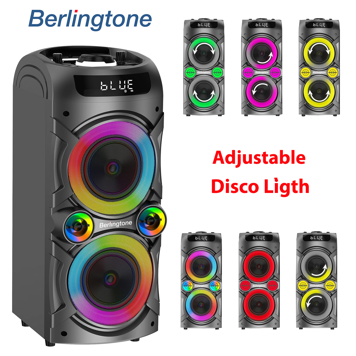 BR-37K BLUETOOTH SPEAKER: POWERFUL SOUND FOR ANY OCCASION – Dive into a musical experience with the Berlingtone BR-37K Bluetooth Speaker. This powerful karaoke machine is designed to deliver superior audio performance with its 100-watt output and dual 5” subwoofers, providing rich, deep bass and crystal-clear highs. Whether you’re hosting a party indoors or outdoors, this speaker is built to impress. – With Bluetooth 5.0 technology, connect effortlessly to your smartphone, tablet, or laptop from up to 100 feet away to play your favorite playlists. Alternatively, use the wired connection to integrate with non-Bluetooth devices via the included 3.5mm audio jack. – Light up your party with the speaker’s integrated LED lights, creating a dynamic and festive atmosphere that pulses to the beat of the music. The lights can be easily managed with just a push of a button, allowing you to set the perfect mood. – The built-in 4500mAh battery ensures your music keeps going for 6 to 10 hours, so your soundtrack stays alive until the last guest leaves. – Manage your music with the included remote control, making it easy to switch tracks, adjust the volume, or change lighting settings from anywhere in the room. The BR-37K also supports TWS, allowing you to connect two speakers for a true stereo sound experience. – Enjoy the flexibility of playing music through Bluetooth, a TF card, or a USB, making it suitable for all types of occasions and musical preferences. The package includes two VHF wireless microphones, making it ideal for karaoke nights, speeches, and announcements. – We’re a U.S.-based company, ensuring quality and reliability with every product. The Berlingtone BR-37K is not just a speaker; it’s the centerpiece of your next big event.